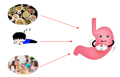 Năm mới tết đến, mọi người họp mặt ăn mừng, cùng nhâm nhi vài chén rượu, cụng ly chúc tụng nhau, ăn uống không điều độ thường làm cho dạ dày phải gánh chịu những cơn đau âm ĩ hay kéo dài. Tư tưởng thưởng cho mình những giấc ngủ dài mà bỏ qua các bữa chính trong ngày, hay chuẩn bị đồ ăn chế biến sẵn và hâm đi hâm lại cũng là những nguyên nhân làm cho căn bệnh đau dạ dày bùng phát trong dịp Tết, bao gồm đau dạ dày mới và tái phát.